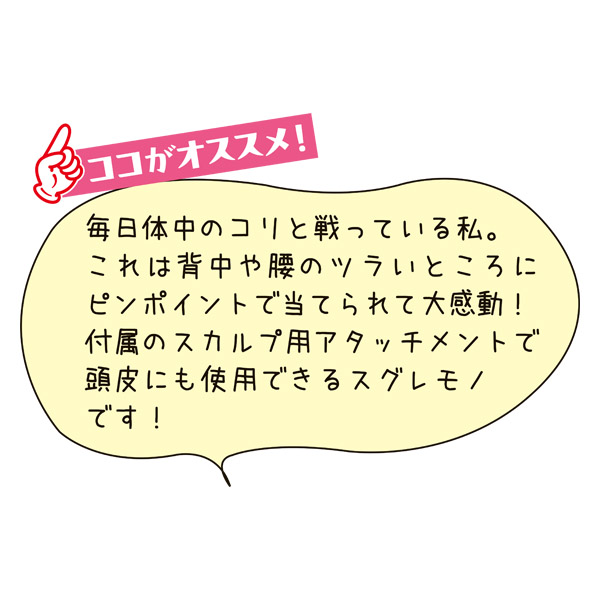 4段階の角度調整が可能なヘッドと背中まで届くハンドルでセルフケア自由自在!